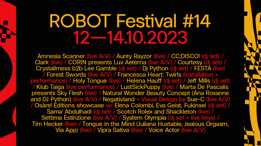 ROBOT è uno degli appuntamenti di riferimento della scena internazionale che solca le avanguardie sonore, declinando in una serie sempre più ampia di linguaggi il termine “elettronica”. La rassegna bolognese disseminerà, ancora una volta, il territorio cittadino di appuntamenti nei luoghi più suggestivi di Bologna – DumBO, Palazzo Re Enzo, Oratorio San Filippo Neri, il TPO e il Teatro San Leonardo – scenari molto diversi tra loro che accoglieranno concerti e performances di artisti che arrivano da ogni angolo del pianeta.